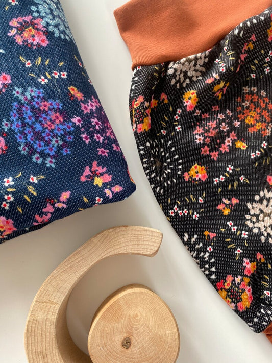Pantalon de pompage en polaire alpine au look denim avec divers motifs floraux (doublé)
